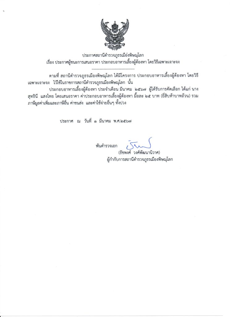 ประกาศจัดซื้อจัดจ้าง ประกอบอาหารเลี้ยงผู้ต้องหา 1 มี.ค.67