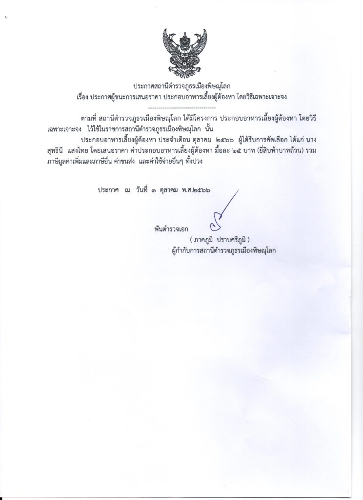 ประกาศจัดซื้อจัดจ้าง ประกอบอาหารเลี้ยงผู้ต้องหา 1 ต.ค.66