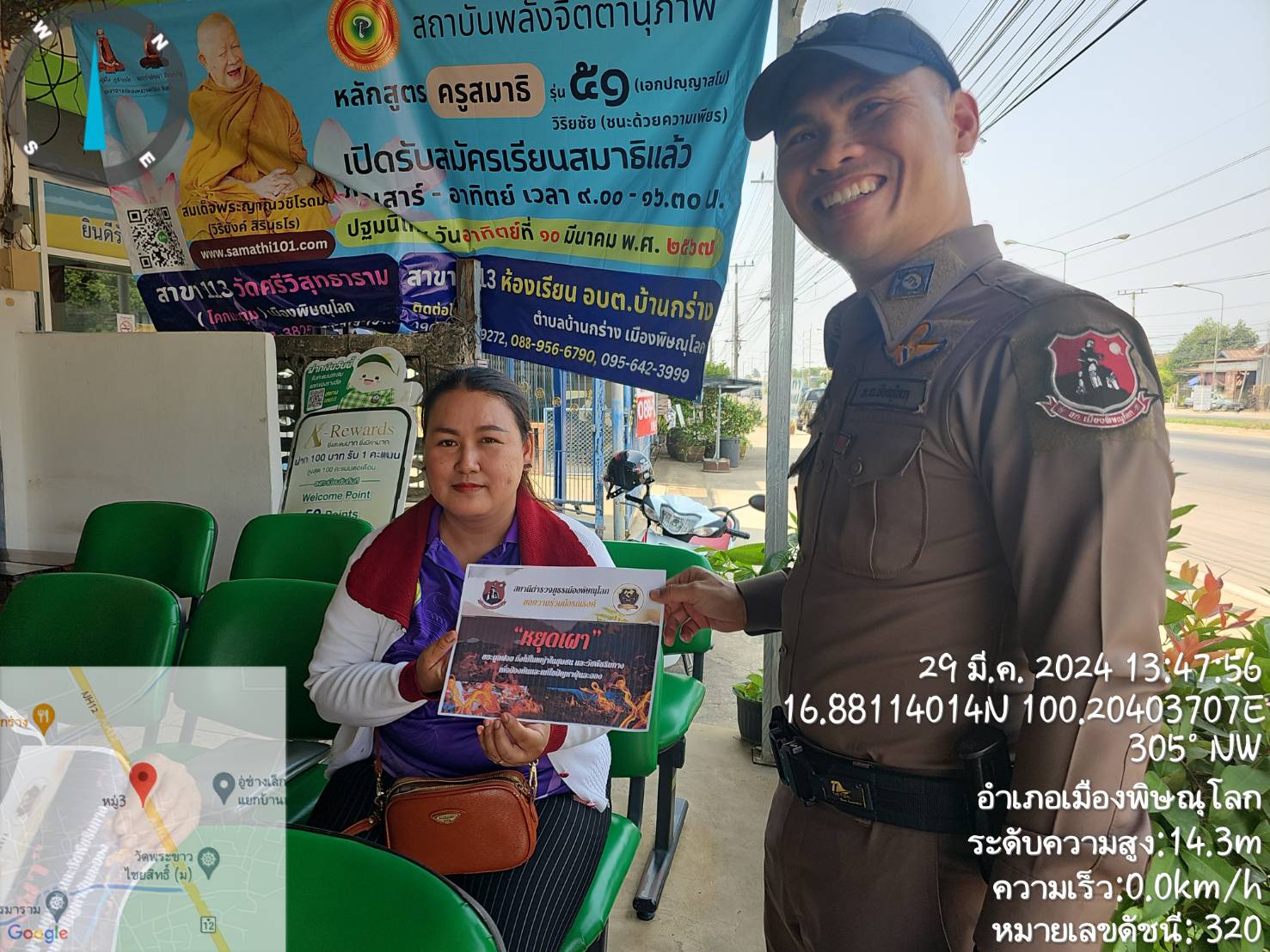 วันนี้ (29 มีนาคม 2567) เวลา 14.00-14.30 น. ร.ต.อ.ณรงค์ศักดิ์ ฝั้นบ้านไร่ รอง สวป.สภ.เมืองพิษณุโลก ได้ร่วมประชาสัมพันธ์ การรณรงค์ “หยุดเผา” ให้กับประชาชนในเขตพื้นที่ตำบลบ้านกร่าง ตำบลพลายชุมพล เพื่อเป็นการช่วยกันลดมลพิษทางอากาศ ประชาชนให้การตอบรับและพร้อมสนับสนุนการประชาสัมพันธ์ต่อไปในเขตของตน