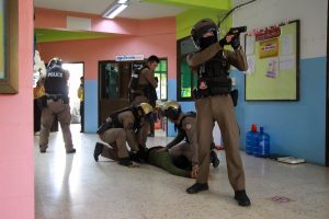 การซักซ้อมแผนเผชิญเหตุ กรณีบุคคลภายนอกเข้ามาก่อเหตุ ความไม่ปลอดภัยในสถานศึกษา “หนี ซ่อน สู้” (Run Hide Fight) และวิธีการใช้ไม้ง่ามระงับเหตุ