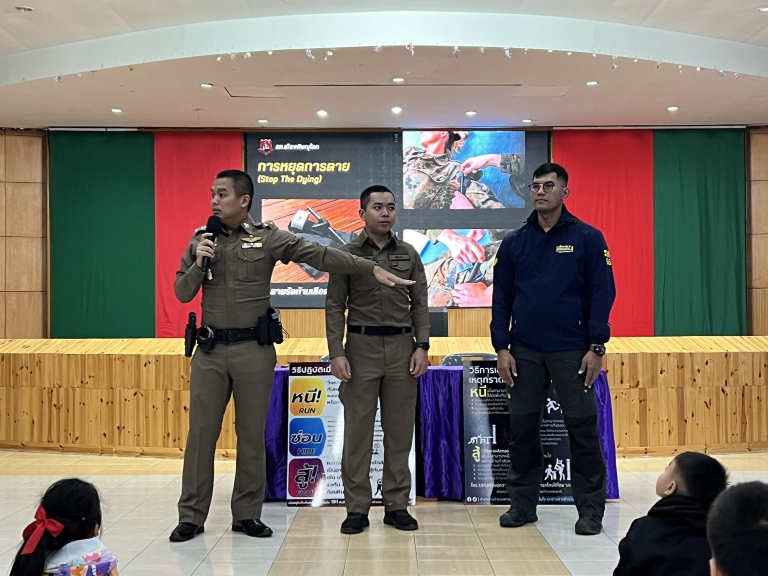 การซักซ้อมแผนเผชิญเหตุ กรณีบุคคลภายนอกเข้ามาก่อเหตุ ความไม่ปลอดภัยในสถานศึกษา “หนี ซ่อน สู้” (Run Hide Fight) พร้อมครู บุคลากร
