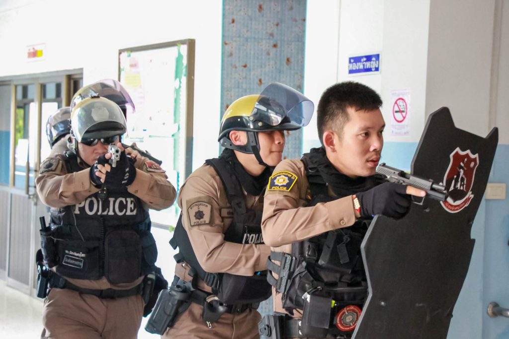พ.ต.ท.บารมี จงแจ้ง รอง ผกก.ป.สภ.เมืองพิษณุโลก, พ.ต.ต.หญิง อิศริยา ต๊กควรเฮง สวป.(ชส.) สภ.เมืองพิษณุโลก พร้อมด้วย ร้อยเวร20, สายตรวจ จยย.ชุดที่ 2 และ ชุดชมส.สภ.เมืองพิษณุโลก อบรมให้ความรู้ การซักซ้อมแผนเผชิญเหตุ กรณีบุคคลภายนอกเข้ามาก่อเหตุ ความไม่ปลอดภัยในสถานศึกษา “หนี ซ่อน สู้” (Run Hide Fight) และวิธีการใช้ไม้ง่ามระงับเหตุ พร้อมครู บุคลากร และนักเรียน จำนวน 100 คน ณ ศูนย์ศึกษาพิเศษ เขตการศึกษา 7 จังหวัดพิษณุโลก วันนี้ (4 เม.ย.67) เวลา 08.30 น. พ.ต.อ.ธัชพงศ์ วงศ์พัฒนานิวาศ ผกก.สภ.เมืองพิษณุโลก มอบหมายให้ พ.ต.ท.บารมี จงแจ้ง รอง ผกก.ป.สภ.เมืองพิษณุโลก, พ.ต.ต.หญิง อิศริยา ต๊กควรเฮง สวป.(ชส.) สภ.เมืองพิษณุโลก พร้อมด้วย ร้อยเวร20, สายตรวจ จยย.ชุดที่ 2 และ ชุดชมส.สภ.เมืองพิษณุโลก อบรมให้ความรู้ การซักซ้อมแผนเผชิญเหตุ กรณีบุคคลภายนอกเข้ามาก่อเหตุ ความไม่ปลอดภัยในสถานศึกษา “หนี ซ่อน สู้” (Run Hide Fight) และวิธีการใช้ไม้ง่ามระงับเหตุ พร้อมครู บุคลากร และนักเรียน จำนวน 100 คน ณ ศูนย์ศึกษาพิเศษ เขตการศึกษา 7 จังหวัดพิษณุโลก